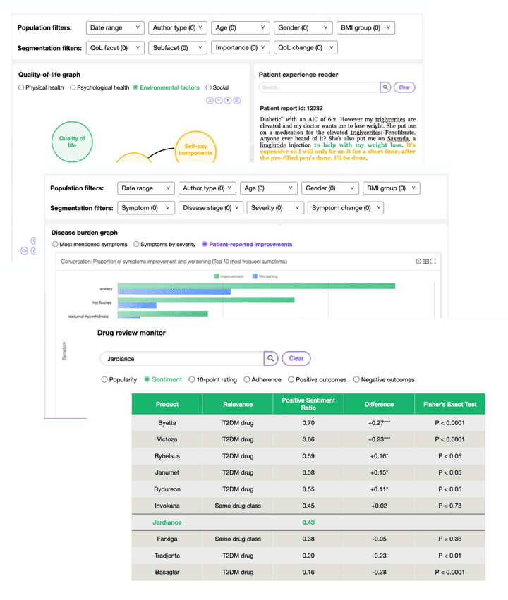 Our supervised algorithms excel at differentiating noise from signals, enabling you to explore unfiltered, authentic online patient experiences and understand your target patient population(s) better.